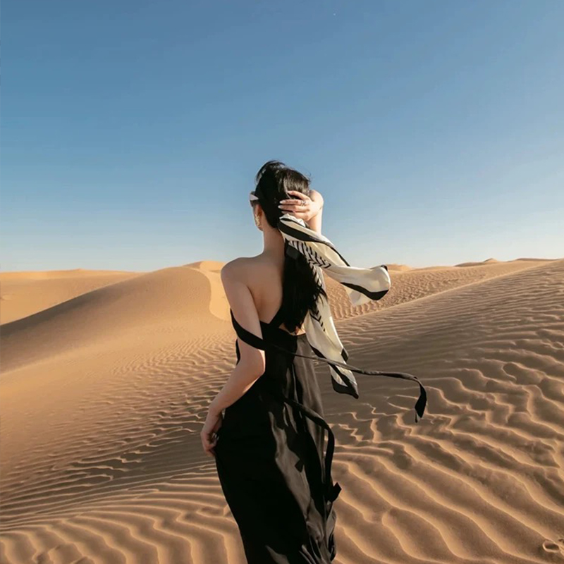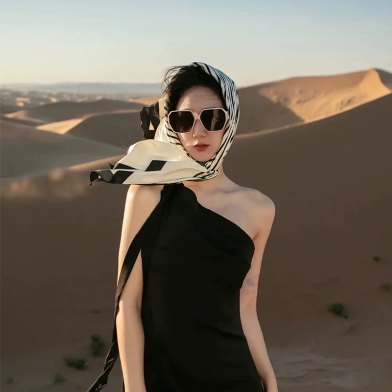 法式沙漠埃及旅游拍照防晒围巾夏季海边沙滩丝巾方巾女真丝包头巾