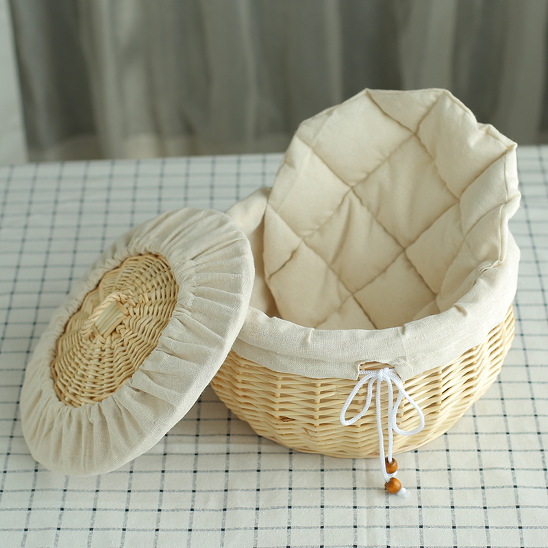 您的位置:他他商城  >   >  家用带盖藤编馒头筐餐厅放馍筐子厨房圆形编织收纳筐柳编面包篮子