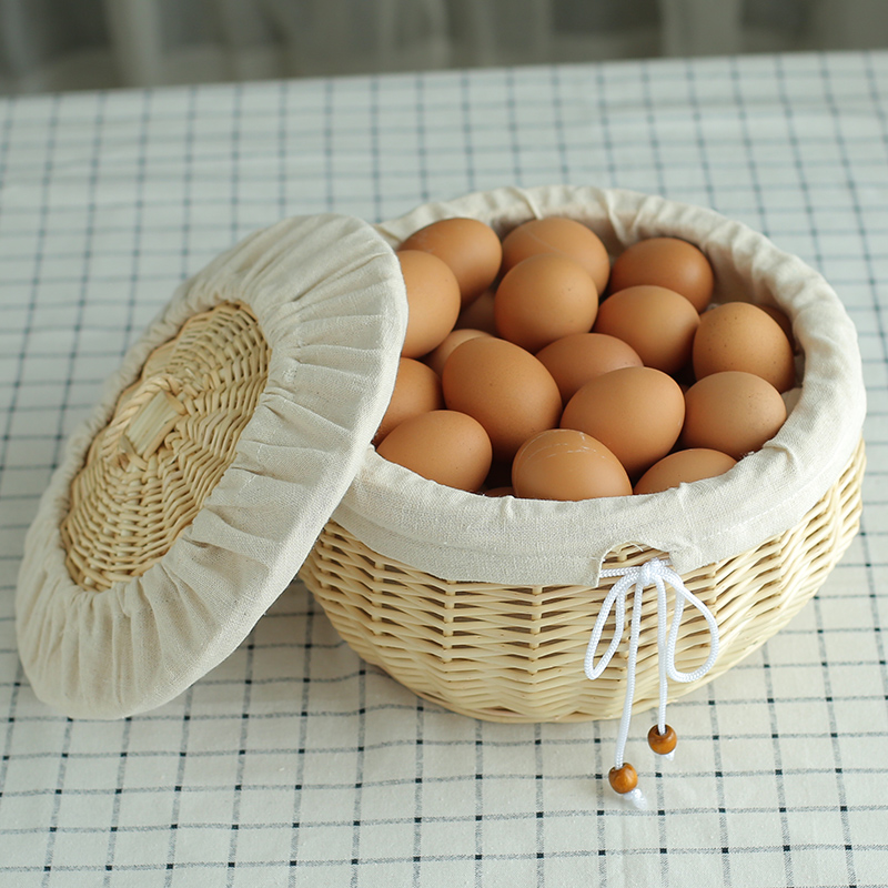 家用带盖藤编馒头筐餐厅放馍筐子厨房圆形编织收纳筐柳编面包篮子 - 爱柳家居企业店