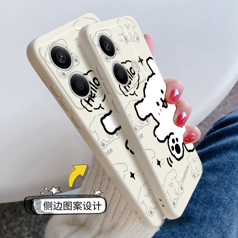 适用红米note13pro+手机壳新款小米Redminote13液态硅胶保护套13pro镜头全包防摔13Rpro软壳13R女生卡通hello