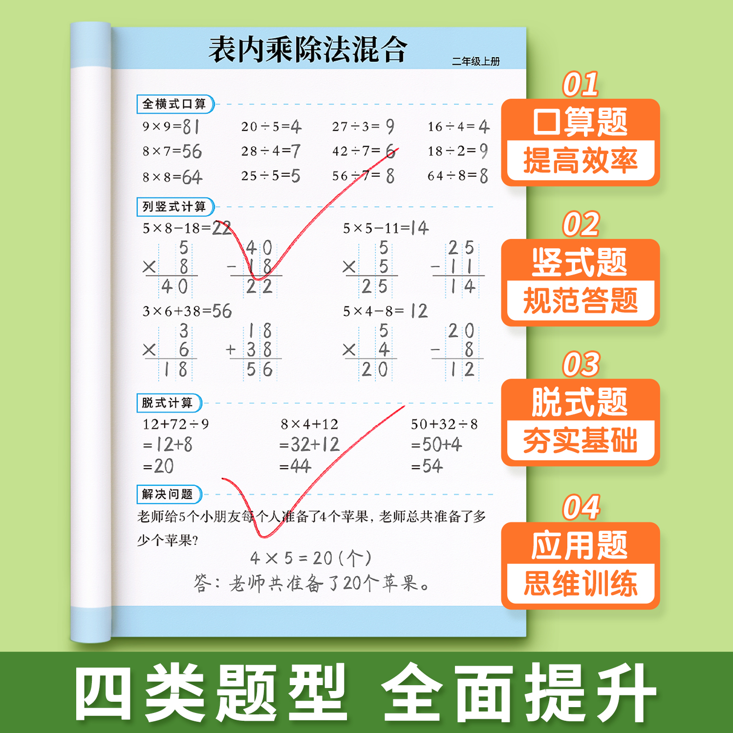 二年级上册口算天天练下册口算题卡数学思维训练练习题卡乘法专项练习本册竖式每天一练同步练习册计算题强化训练题数学必刷题 - 金枝叶办公用品旗舰店