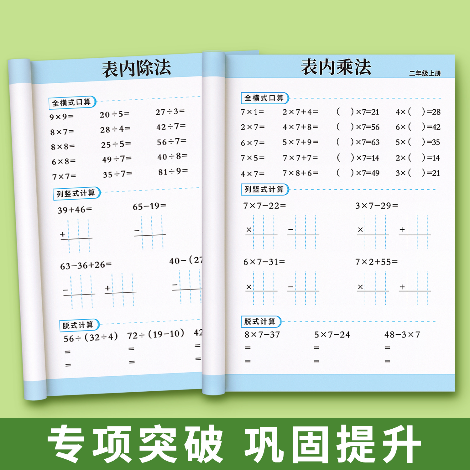 二年级上册口算天天练下册口算题卡数学思维训练练习题卡乘法专项练习本册竖式每天一练同步练习册计算题强化训练题数学必刷题