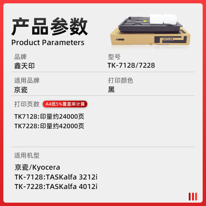 鑫天印适用京瓷3212i墨粉组件TK-7128 TK7228粉盒TASKalfa 4012i数码复合打印碳粉KYOCERA 7128墨盒 巴川粉 - 鑫天印旗舰店