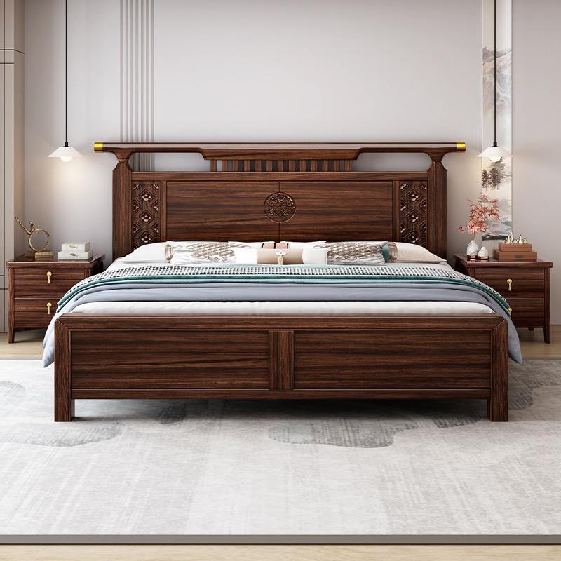 新中式乌金木实木大床主卧2米1.8m双人床现代简约轻奢婚床