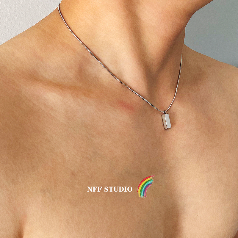 NFF极简小银砖不掉色钛钢项链男潮小众设计嘻哈冷淡风高级锁骨链 - NiuFaFa Studio轻奢