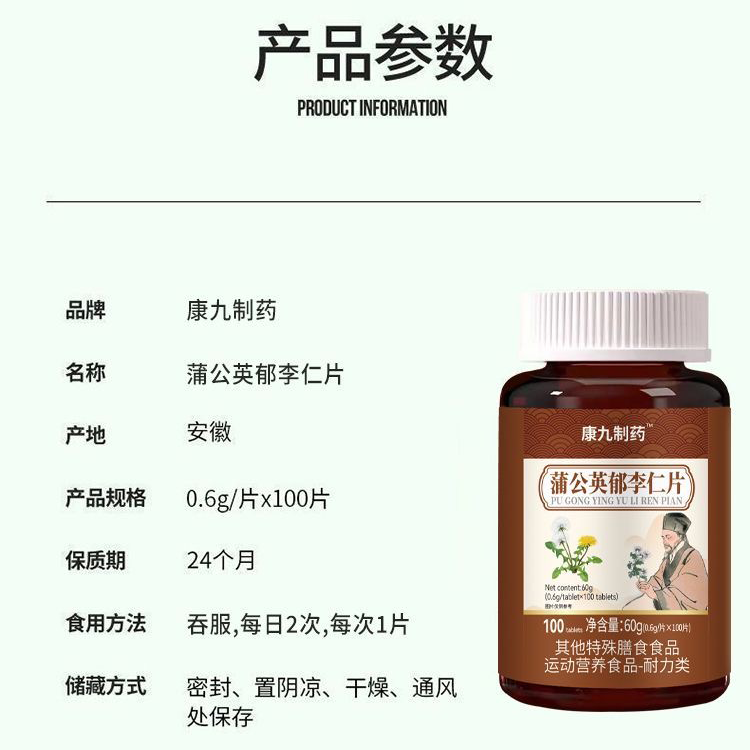 康九制药™蒲公英郁李仁片100片【天猫正品】运动营养食品耐力类 - 康立特医疗器械专营店