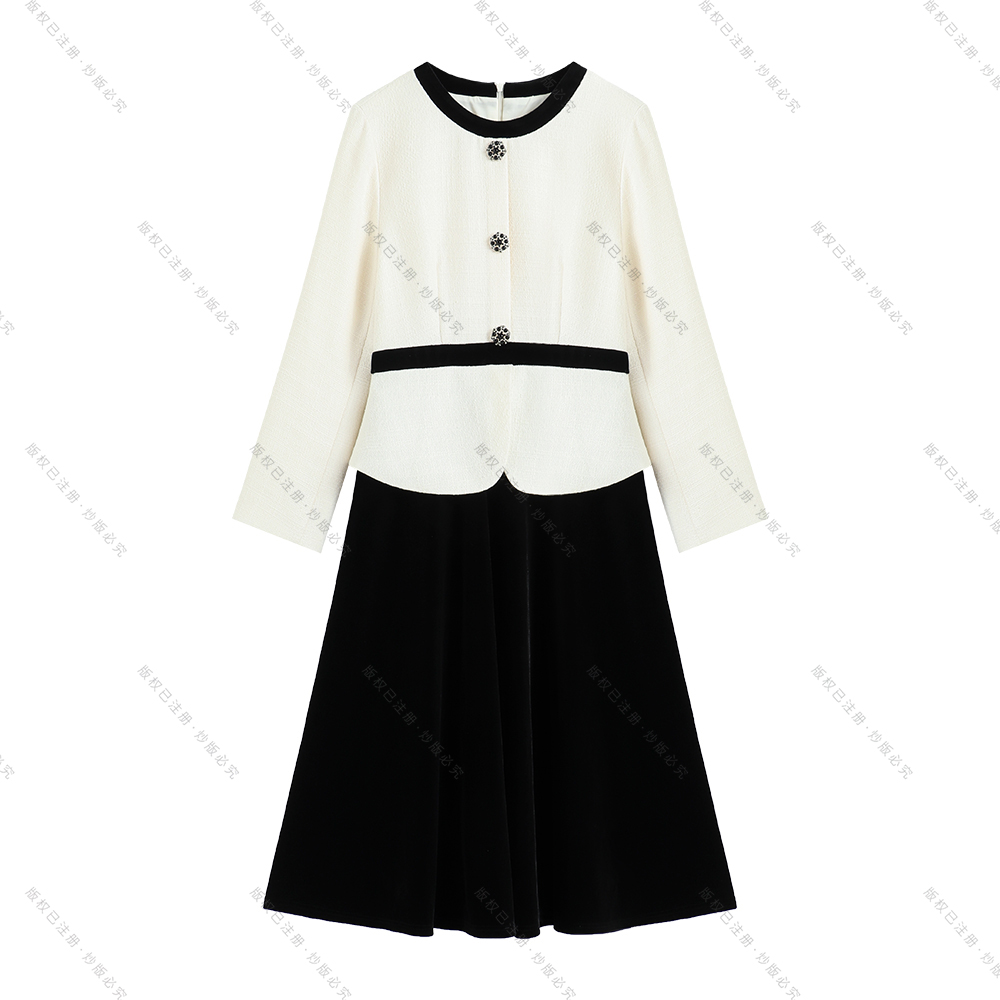 【深圳畅姐】秋冬新款时尚定制简约时尚撞色拼接气质连衣裙