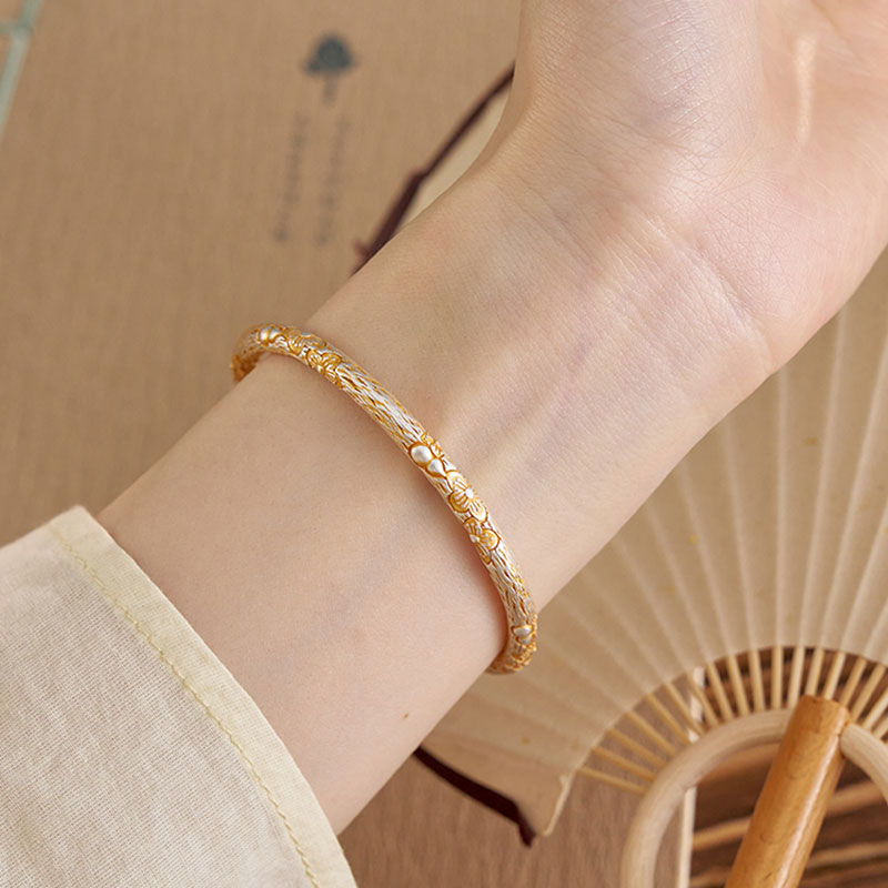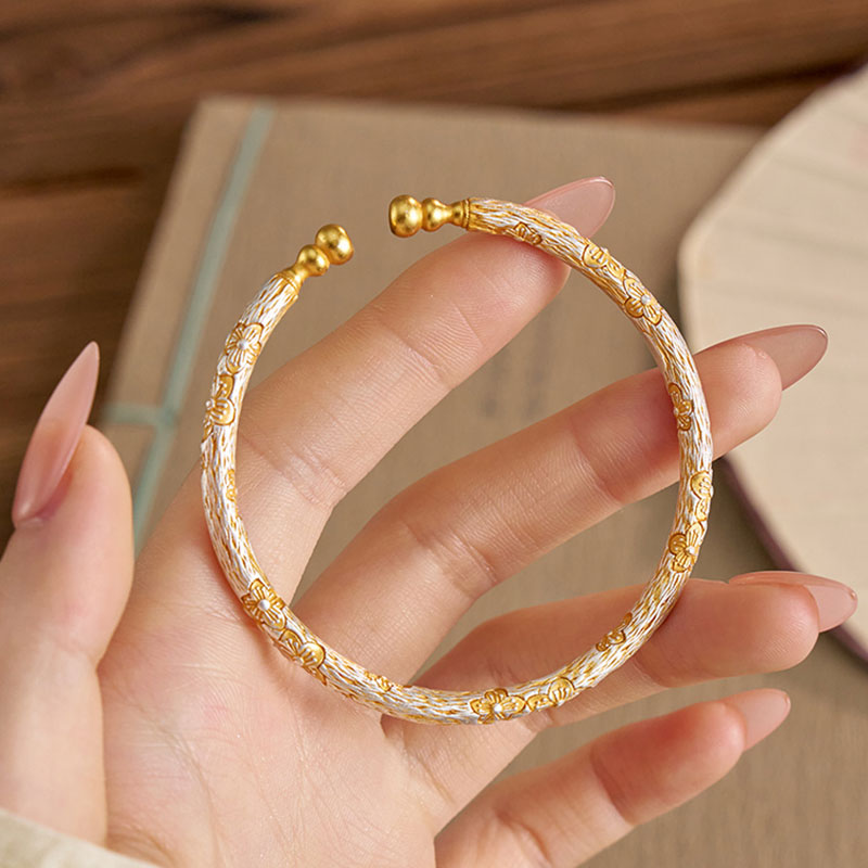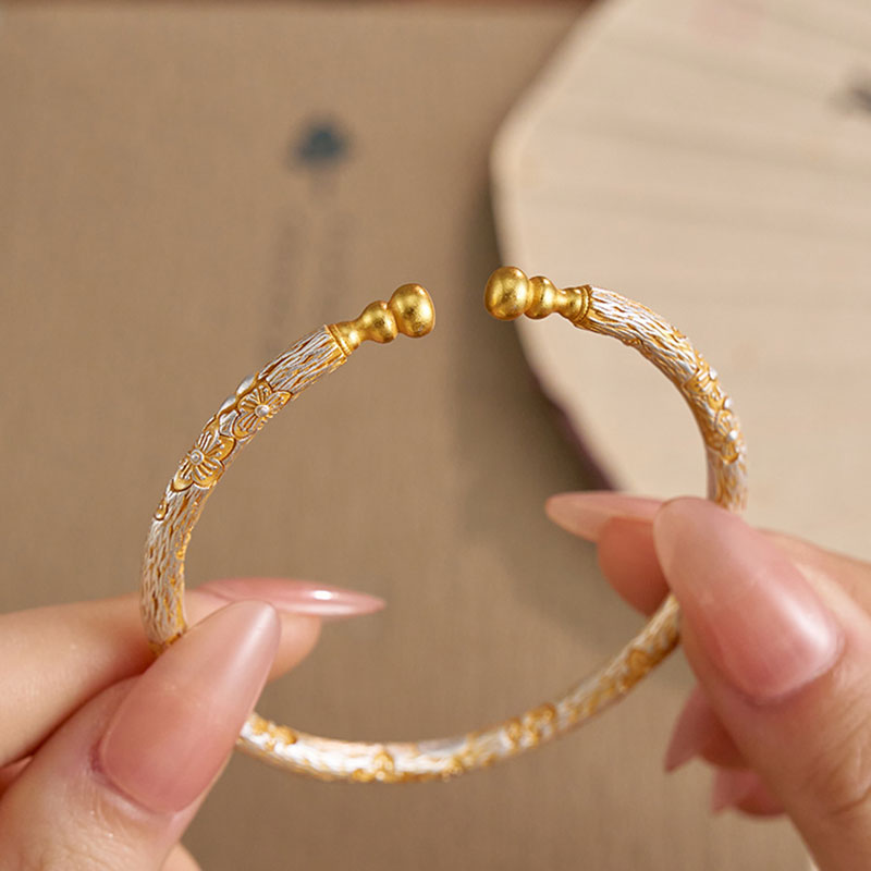 925银樱花葫芦手镯女新中式小众宫廷风高级描金工艺轻奢优雅手环 - 青丝国风饰品