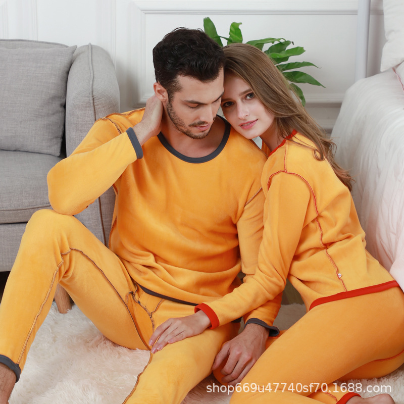 您的位置:他他商城  >   >  黄金绒保暖内衣男新款秋衣情侣套装加绒加大打底衫女士秋裤发热裤