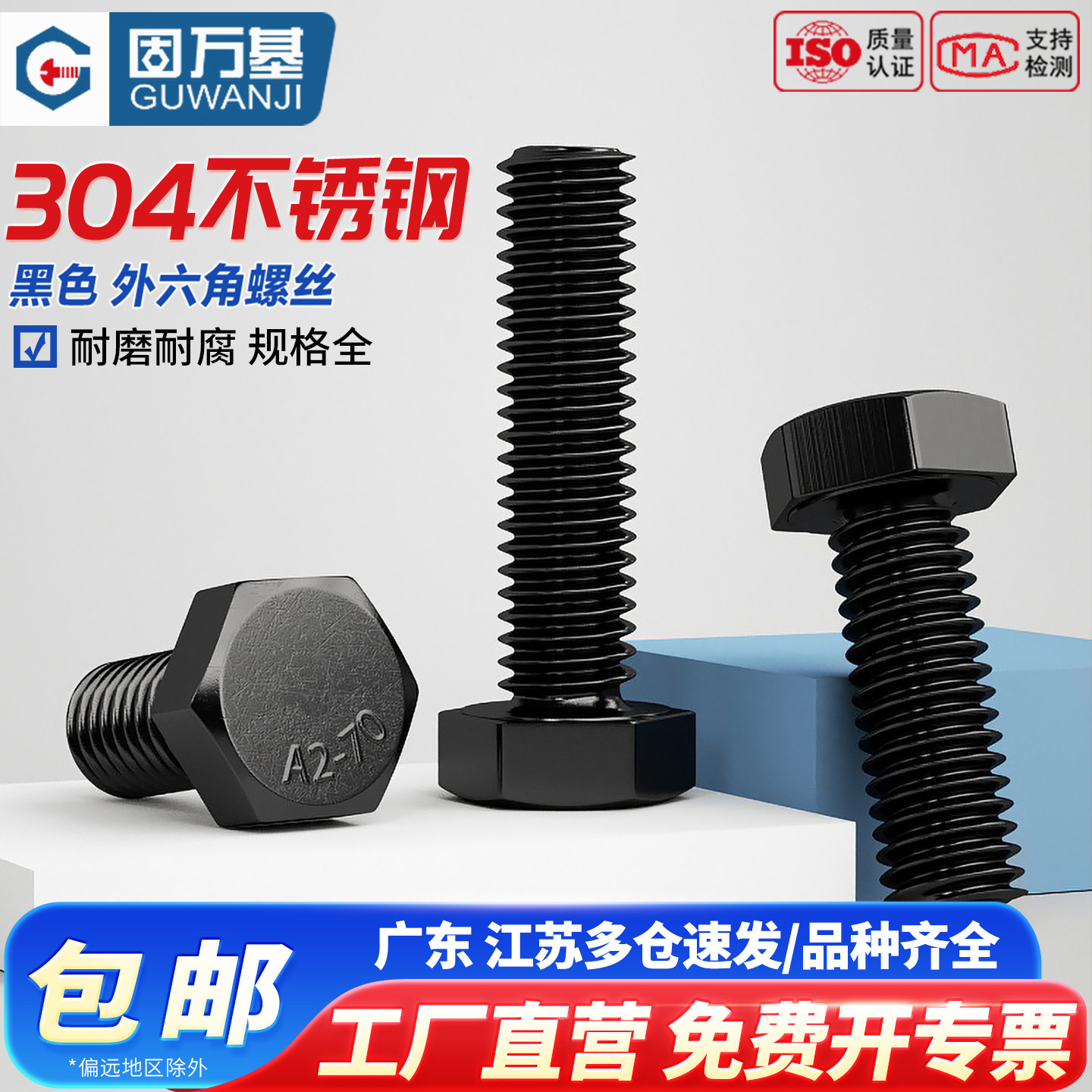 黑色304不锈钢外六角螺丝螺栓大全加长螺杆螺钉M3M4M5M6M8M10M12 - 固万基官方旗舰店