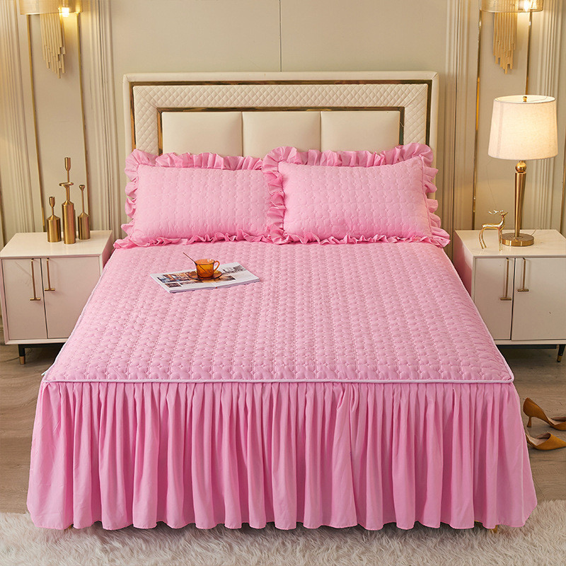 cb#夹棉磨毛床裙式床罩裙单件床笠床垫保护套1.5m1.8m床单家用 - 雨滴小新