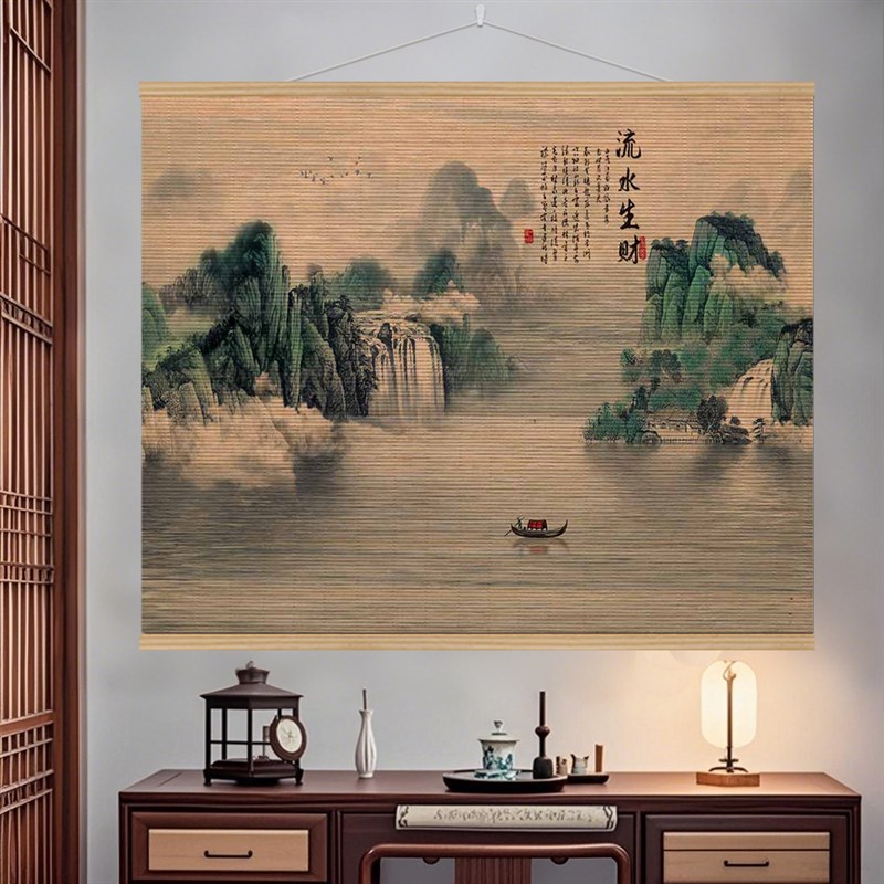 富水长流竹帘聚宝盆办公室装饰挂画 画国画 画沙发背景风景山水X - 满杏行日用品