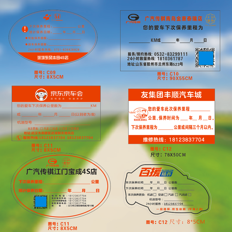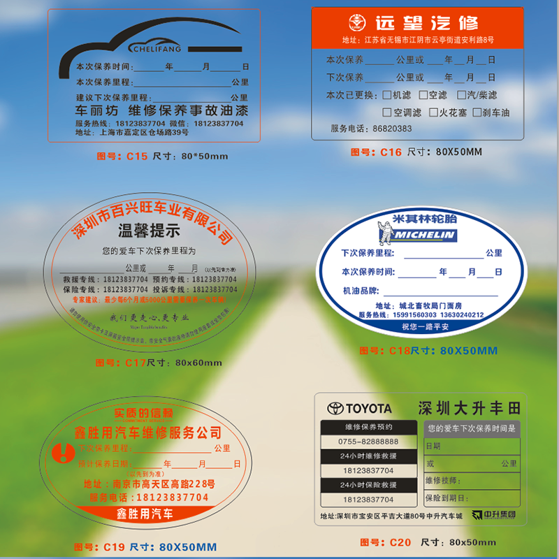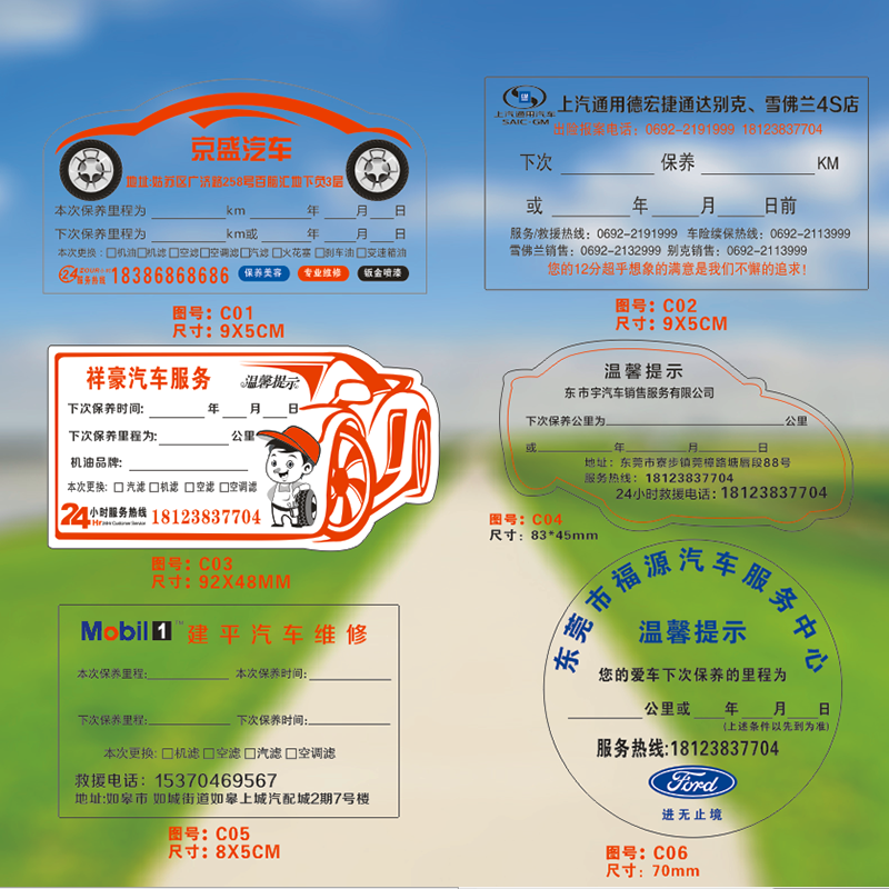 保养提示贴 提醒贴提示卡订做汽车静电贴维修机油不干胶贴纸标签 - 五岳汽车用品