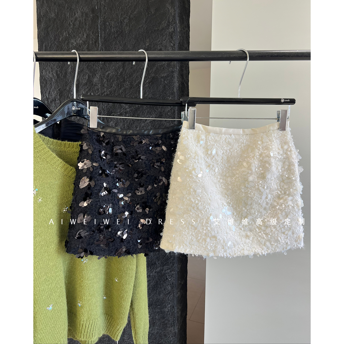 波光粼粼 重工亮片半裙 小众设计师 时髦轻奢后拉链a字短裙女秋冬 - 艾维维高级定制