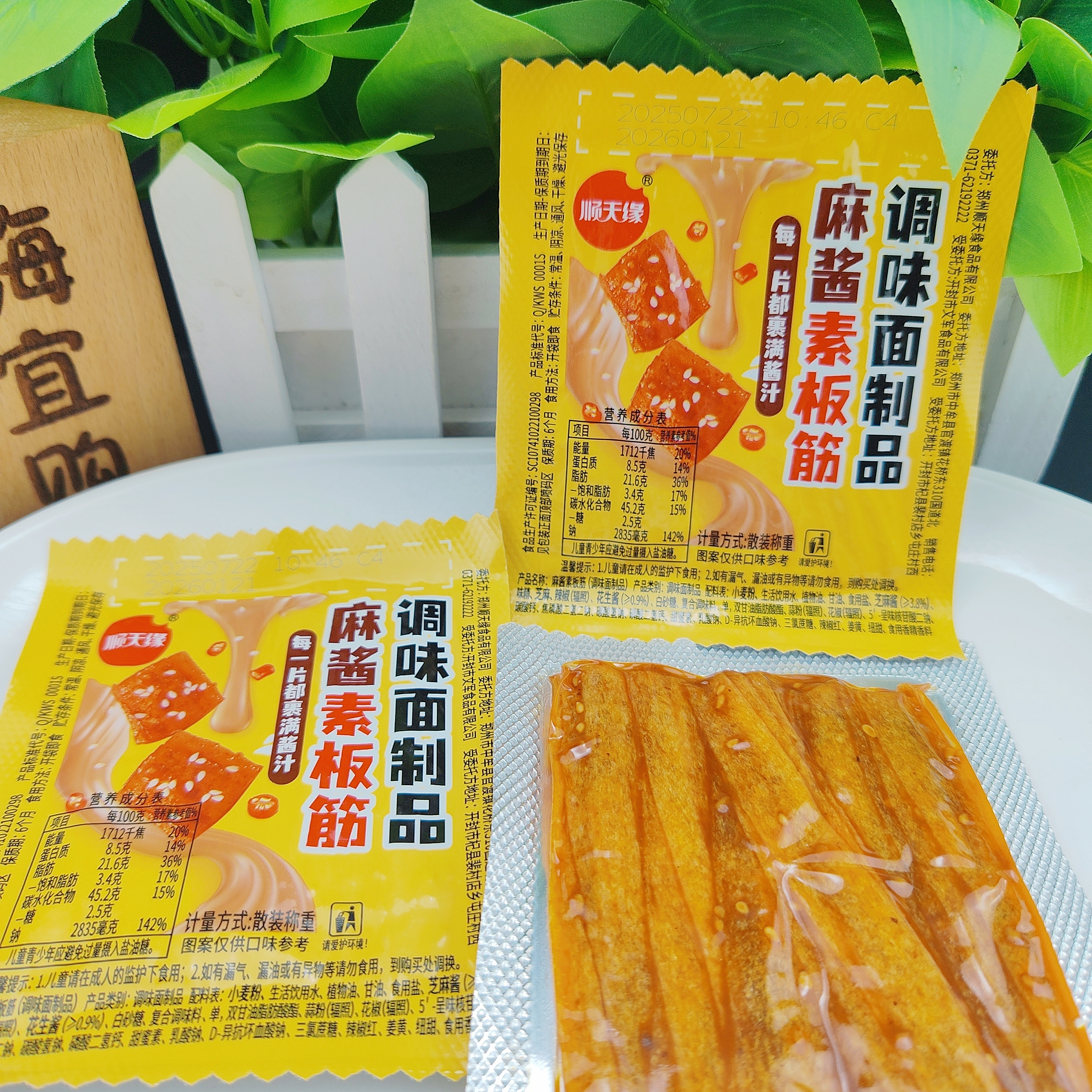 顺天缘麻酱素板筋辣条片怀旧零食鲜素牛板筋面筋豆筋嚼劲网红零食 - 嗨宜购食品商贸