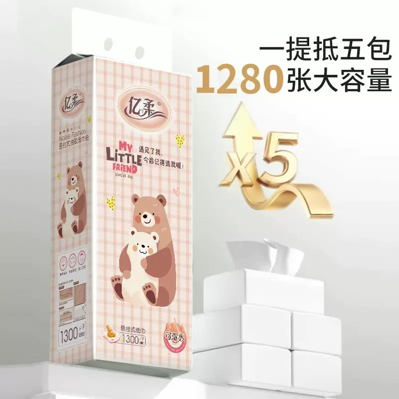 亿柔悬挂式抽纸家用实惠大包纸巾卫生间抽取式抽纸小熊印花卫生纸 - H酷潮生活馆