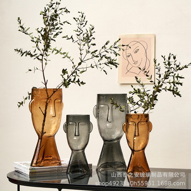 轻奢创意人脸玻璃花瓶台面花瓶网红花瓶感化插花花瓶