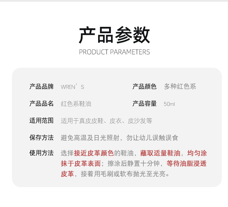 您的位置:他他商城  >  居家  >  WREN'S红色酒红色鞋油真皮补色划痕修复膏皮鞋保养护理膏原装进口