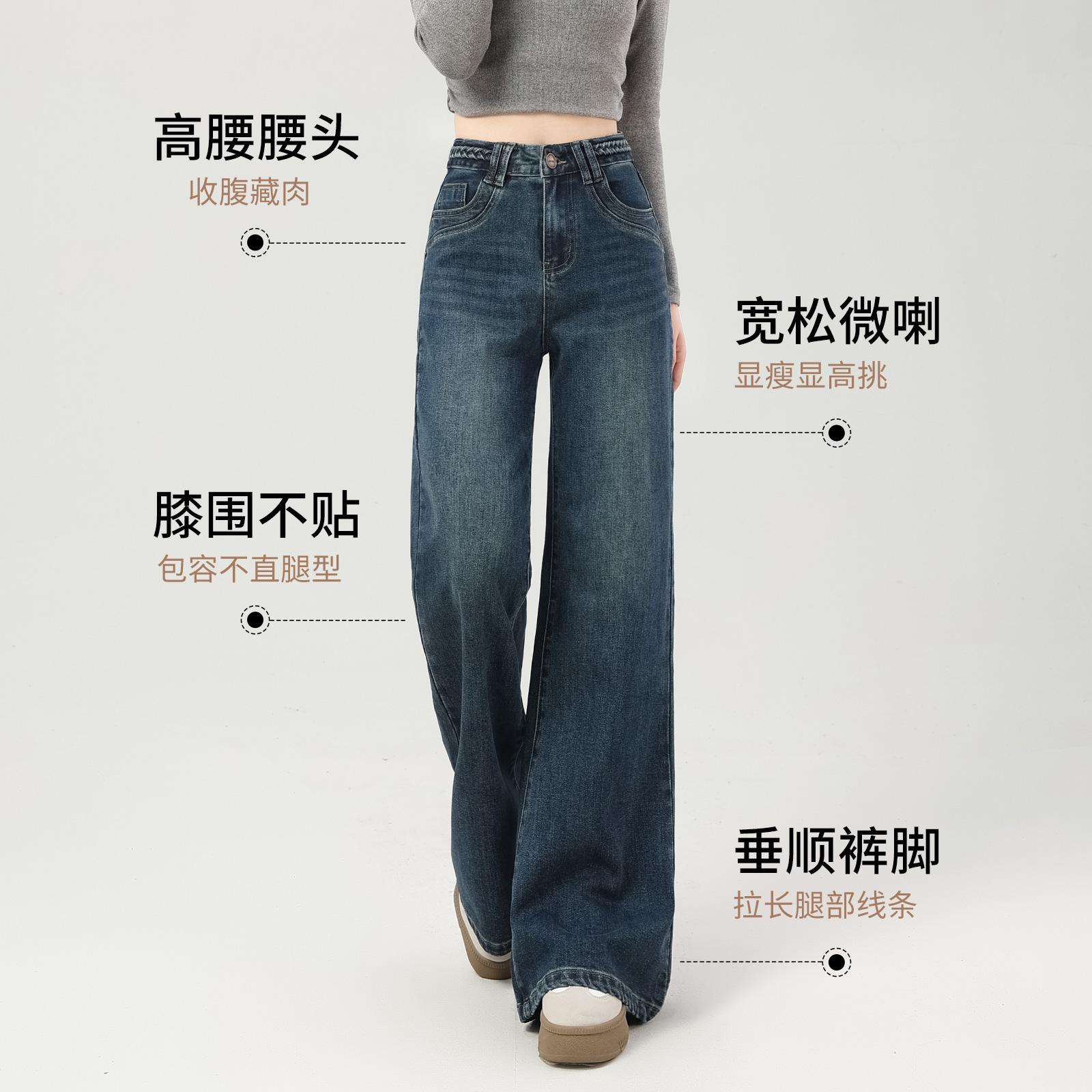 加绒微喇牛仔裤女秋冬加厚2025新款深蓝色小个子直筒不贴腿喇叭裤 - 芳芳之佳旗舰店