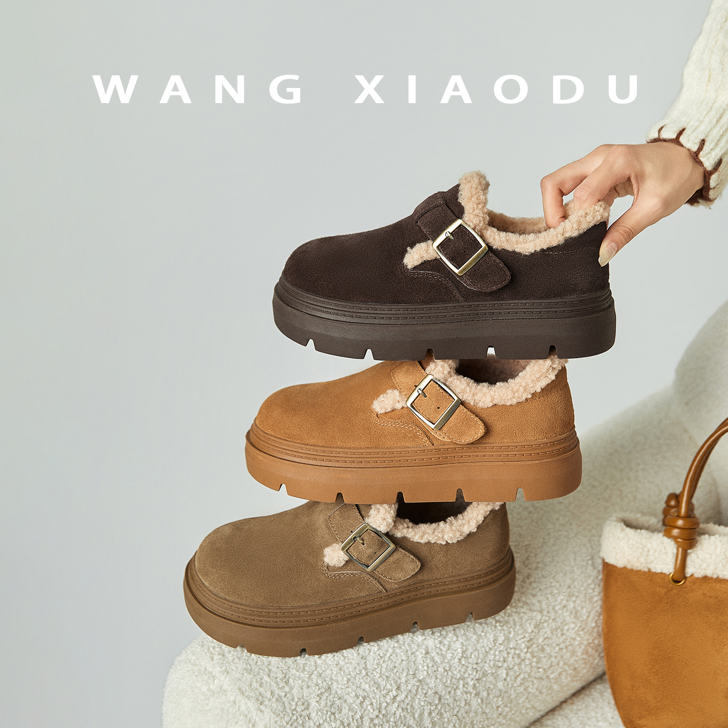 【王小毒】小雪时节●4.5cm内增高勃肯鞋女加绒保暖羊羔毛毛单鞋