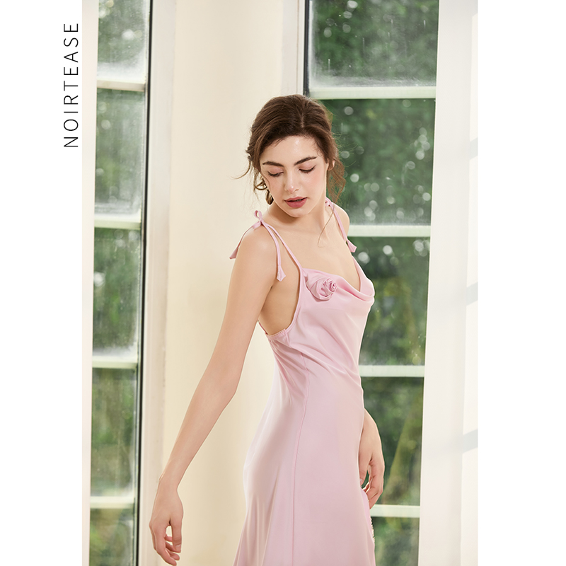NT夏季丝质薄款性感睡裙女士V领法式中长款侧开吊带睡衣裙 - NoirTease轻性感睡衣
