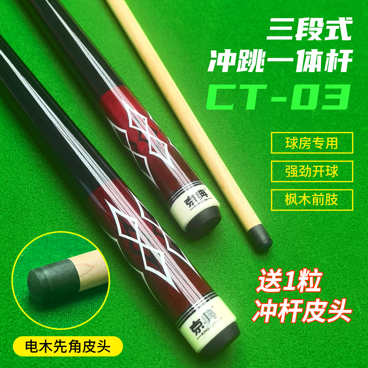 台球杆冲杆开球冲杆冲跳一体杆桌球杆中八台球杆京典CT03球房公杆