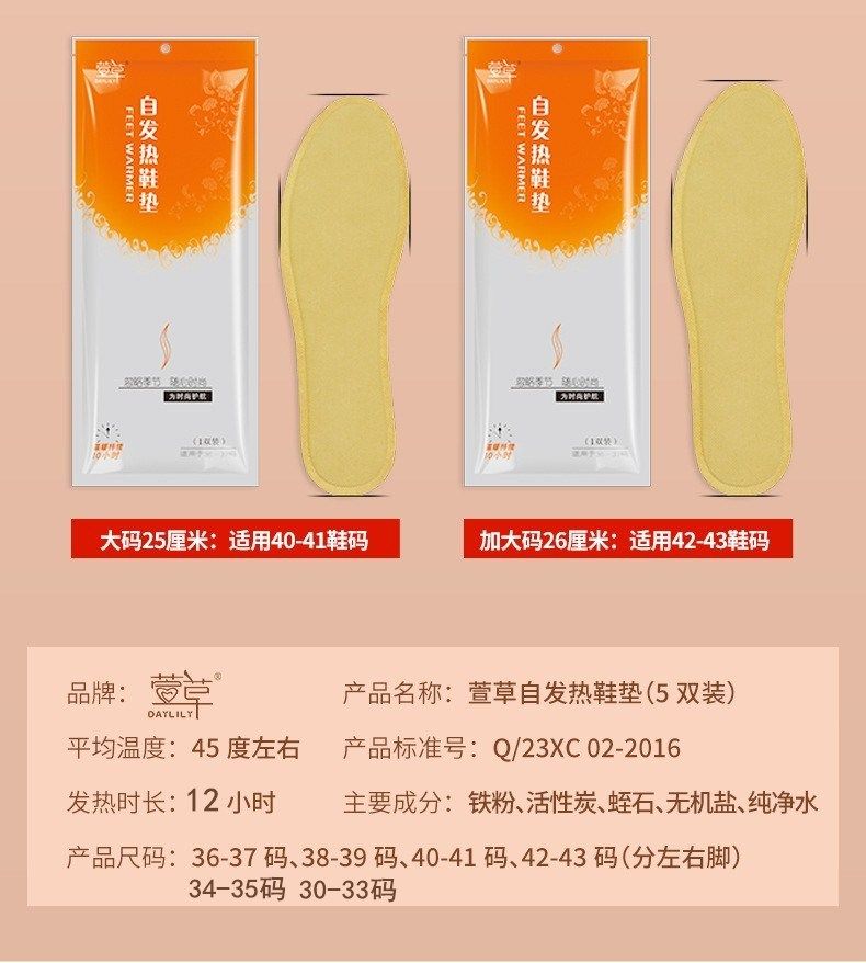 萱草发热鞋垫女自发热免充电自加热鞋垫可行走男暖足贴暖脚底热垫 - 胖嘟嘟母婴工厂店