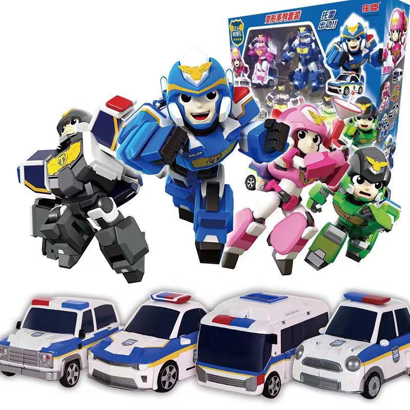 正版正义救援队变形机器人金刚玩具套装汽车警车托雷施恩哈莫男孩 - 四海智汇商贸