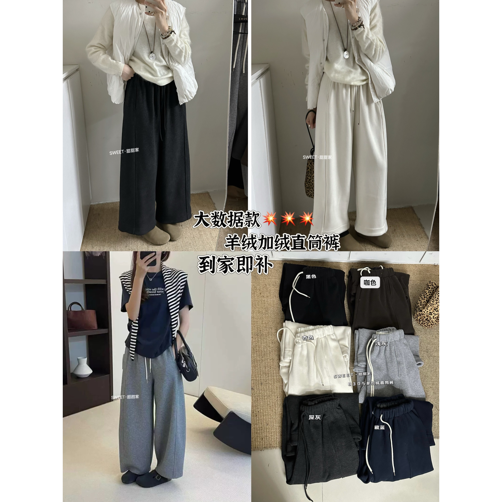 甜甜家-冬上新摇粒绒九分直筒裤加绒加厚休闲裤8305