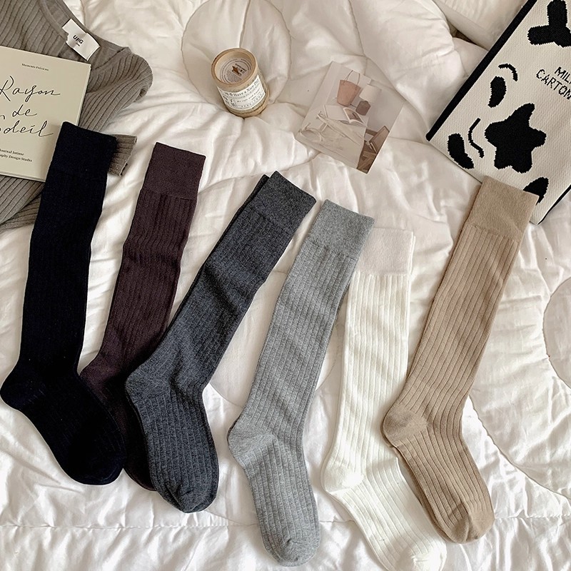 小腿袜灰色纯棉春秋堆堆袜高筒袜子女及膝袜秋冬深灰色秋季长筒袜