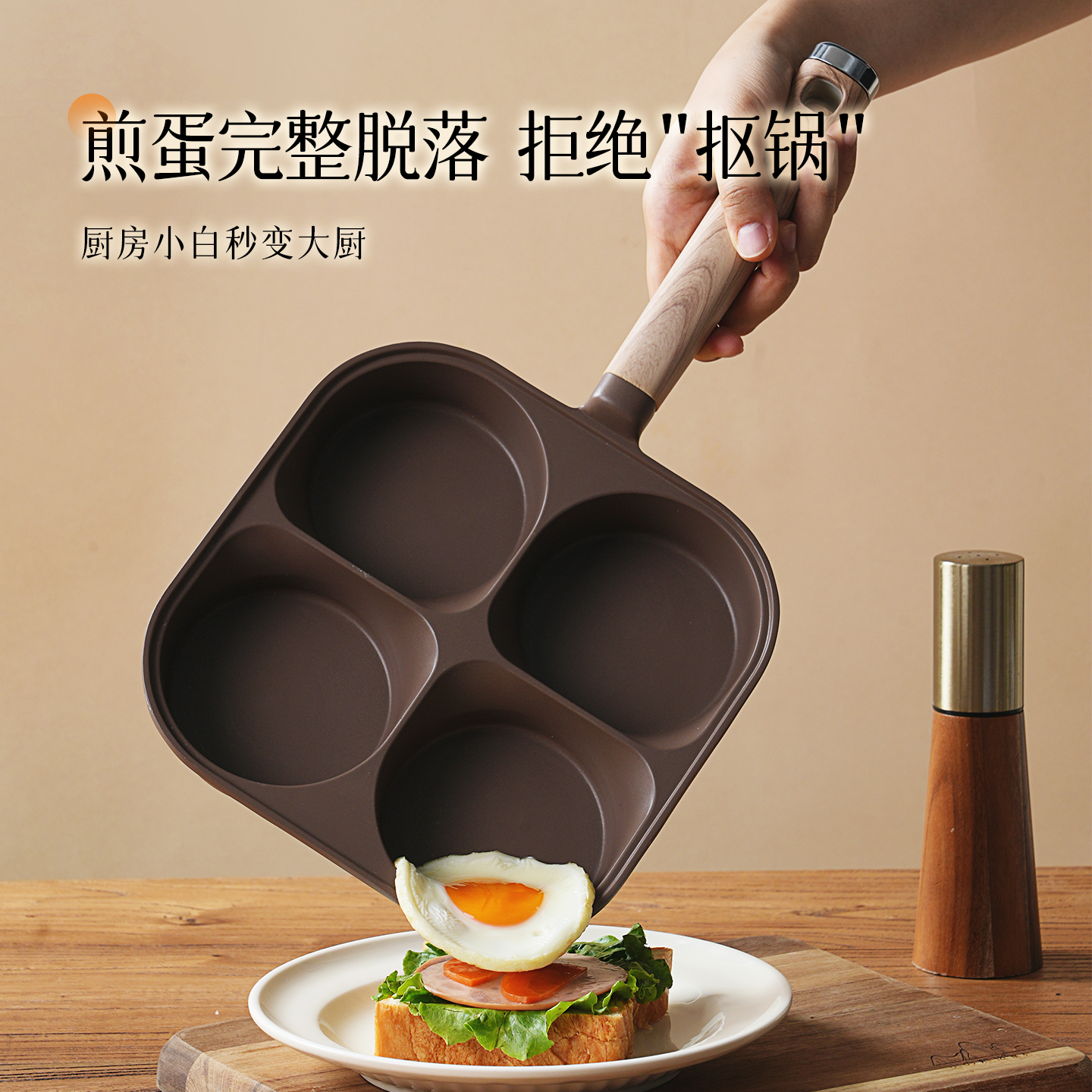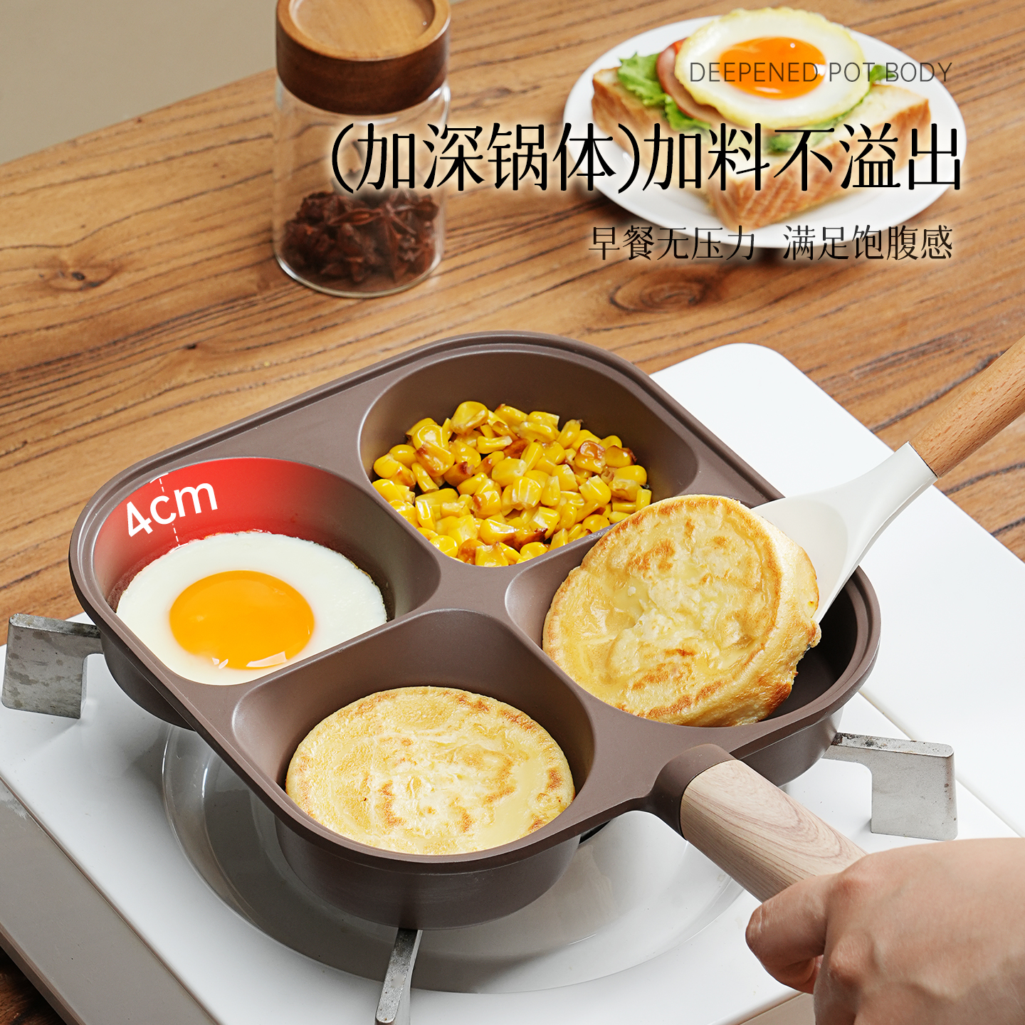 BESCO鸡蛋汉堡锅钛早餐煎锅四孔平底不粘锅加深煎蛋专用早餐神器 - besco旗舰店