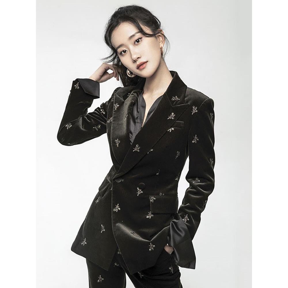 明星同款黑色休闲金丝绒西装套装女秋冬高级感职业正装高端女人味
