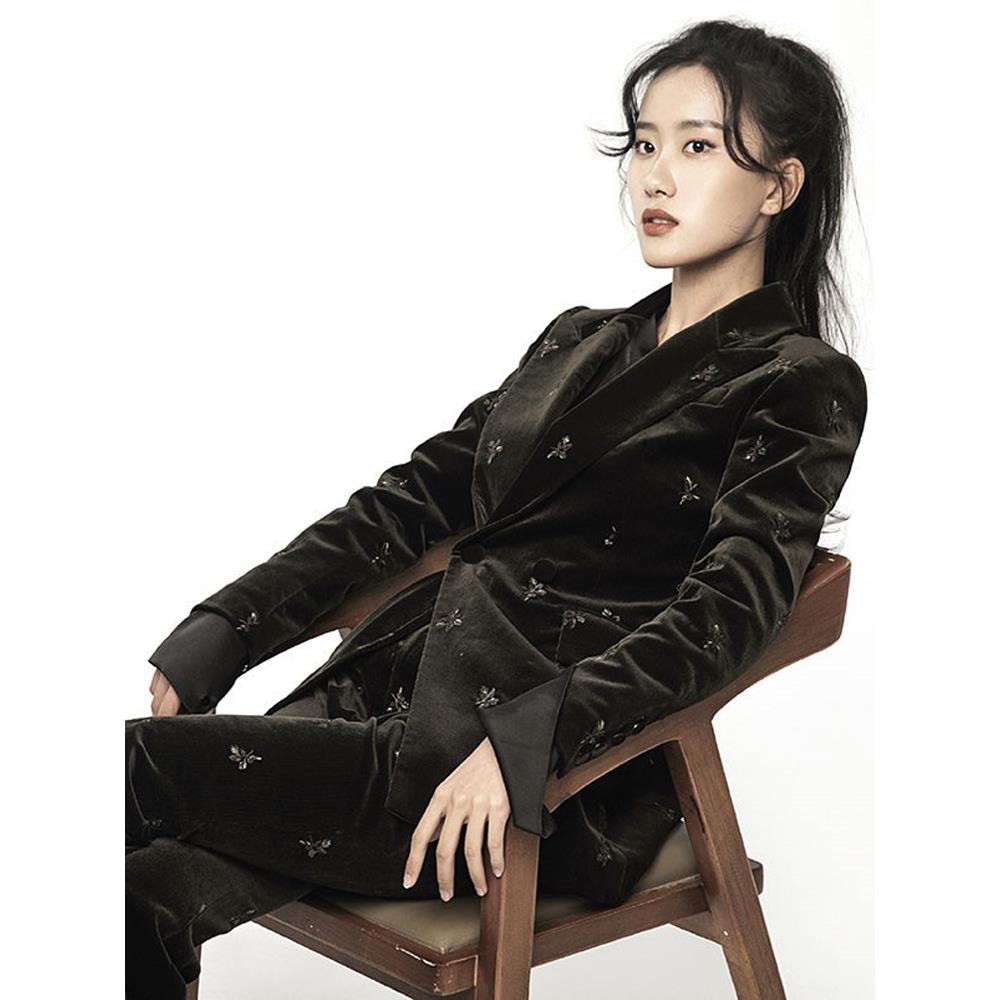 明星同款黑色休闲金丝绒西装套装女秋冬高级感职业正装高端女人味 - 崇光免税香港代购