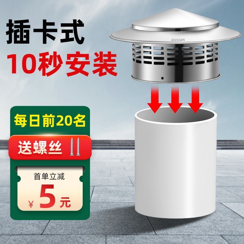 您的位置:他他商城  >   >  304不锈钢屋顶排气管防雨帽烟囱防雨罩伞形室外透气帽PVC管烟囱盖