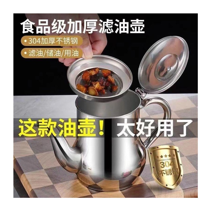 加厚304不e锈钢安士油壶过罐壶厨房家用油瓶大容量滤油储油灌欧式 - 火秋堂日用品