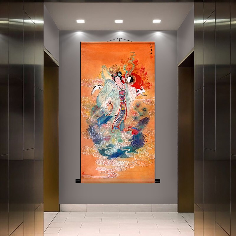 九天玄女娘娘入门玄m关装饰道家神像入门玄关沙发圣母丝绸卷轴挂 - tb1611138048