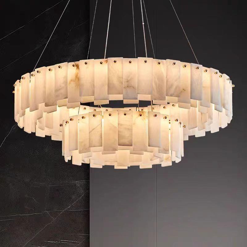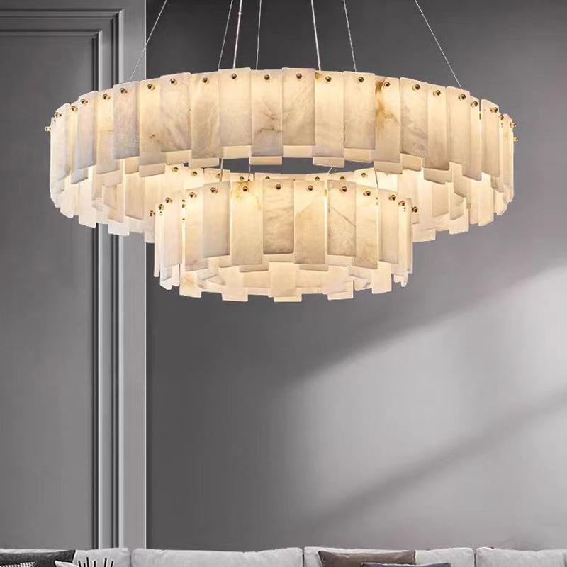 后现代全铜吊灯客厅新中式设计师创意简约餐厅卧室天然云石全铜灯 - 禾森百货商行2