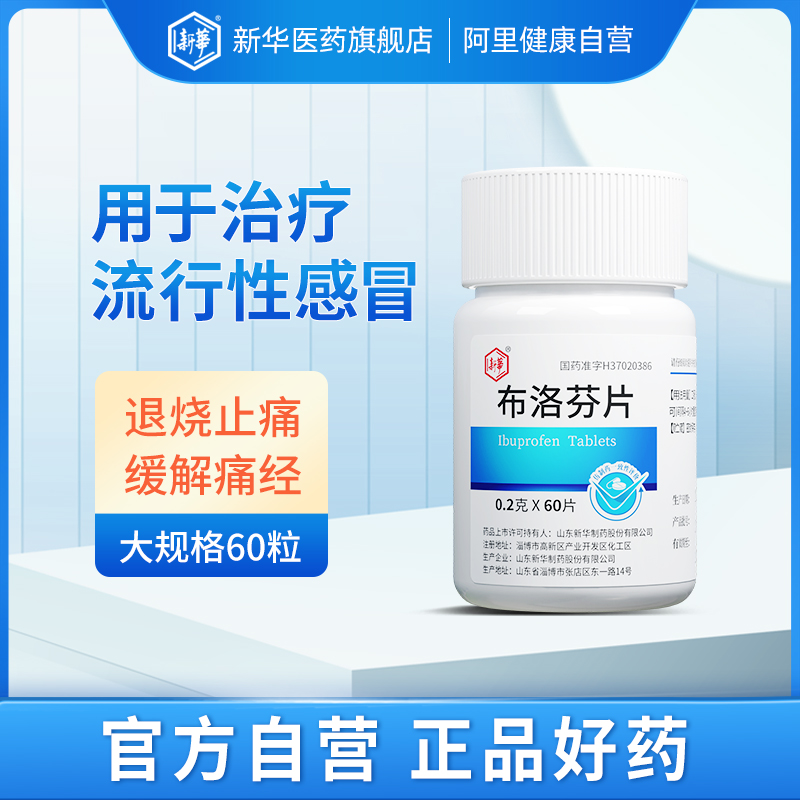 新华布洛芬片0.2g*60片/瓶感冒痛经止痛药缓解头痛退烧成人止疼片 - 新华医药旗舰店