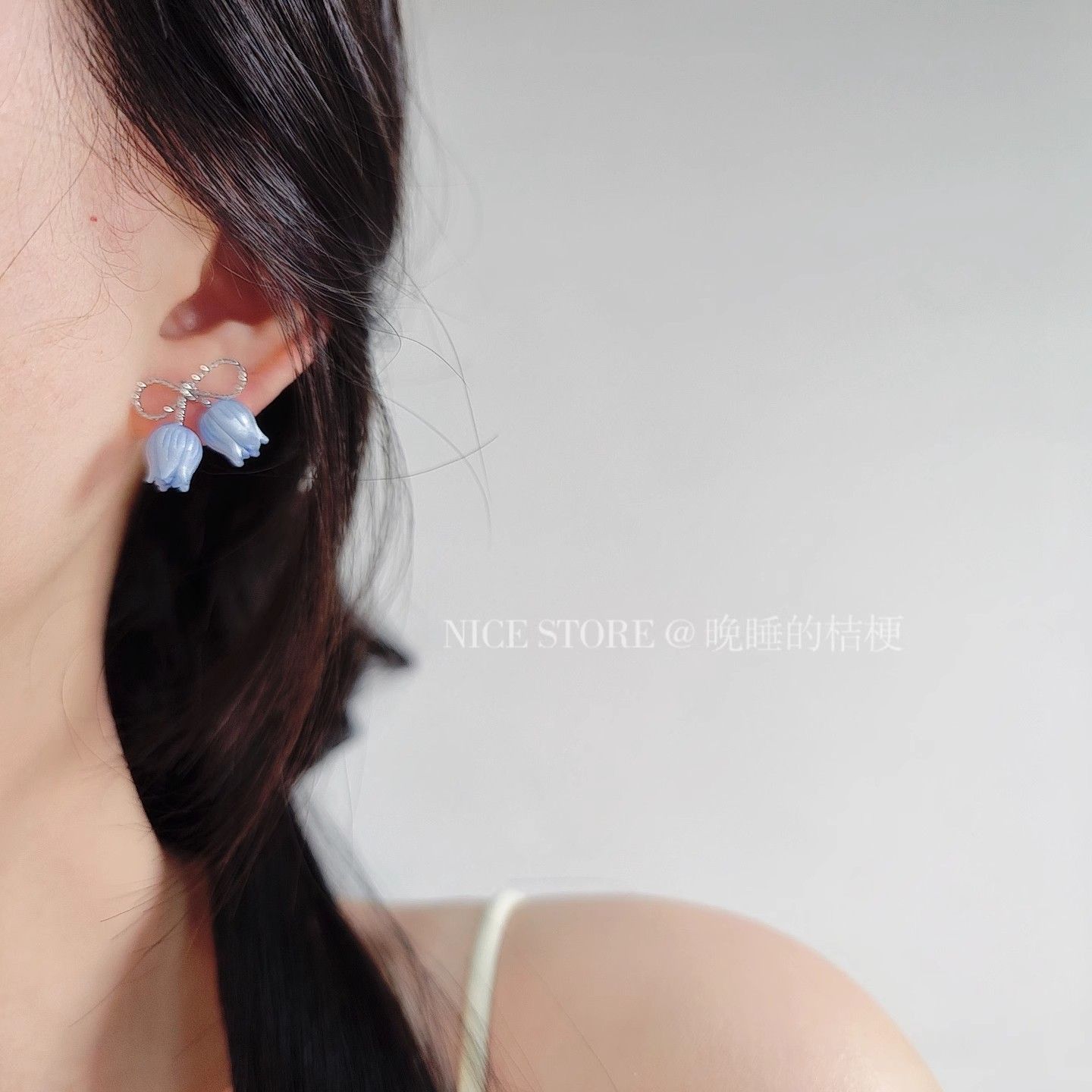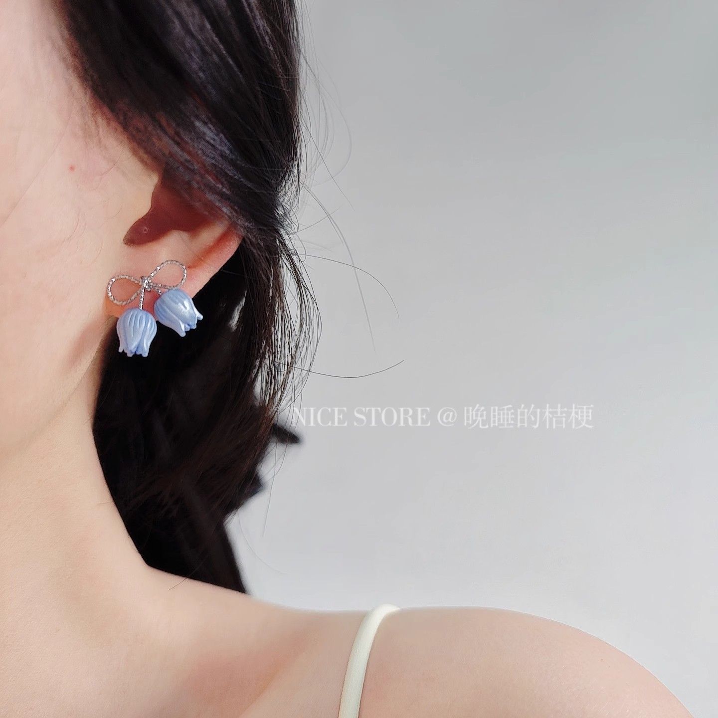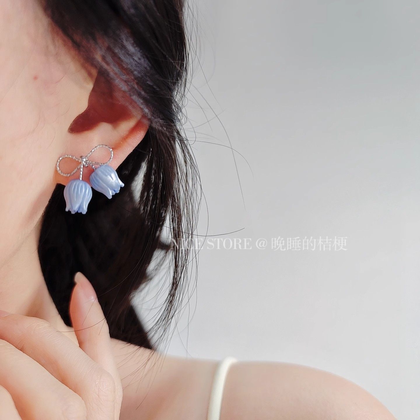 晚睡的桔梗「郁金香雨雾」甜美蝴蝶结郁金香小巧百搭耳钉日韩耳饰
