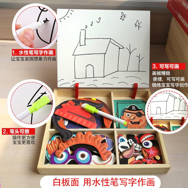 儿童磁性拼图人物五官益智贴宝宝智力开发木质早教1-3-周岁 - 天河鞋店阁