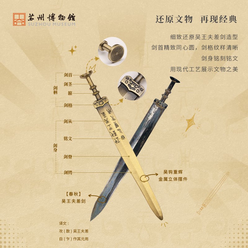 苏州博物馆 吴钩重辉金属立体摆件吴王夫差剑国风装饰生日礼物 - 运平小铺子