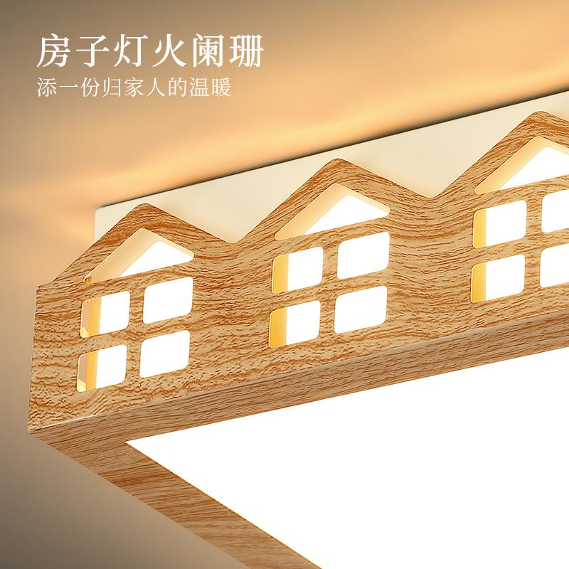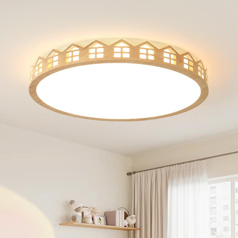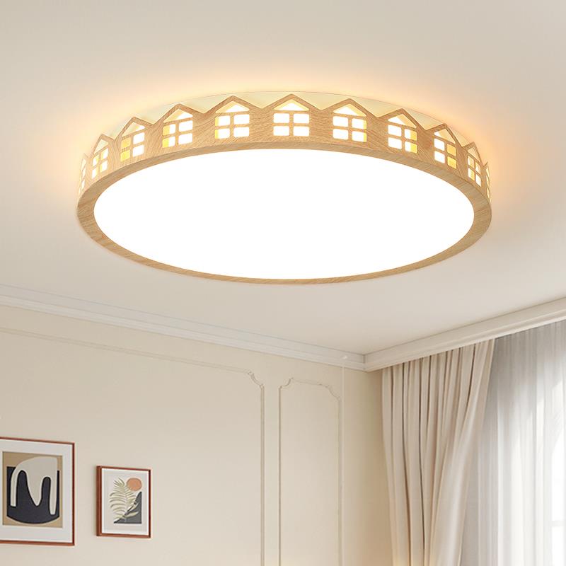房子 设计师卧室吸顶灯 原木纹温馨北欧儿童房灯 原木风网红灯具