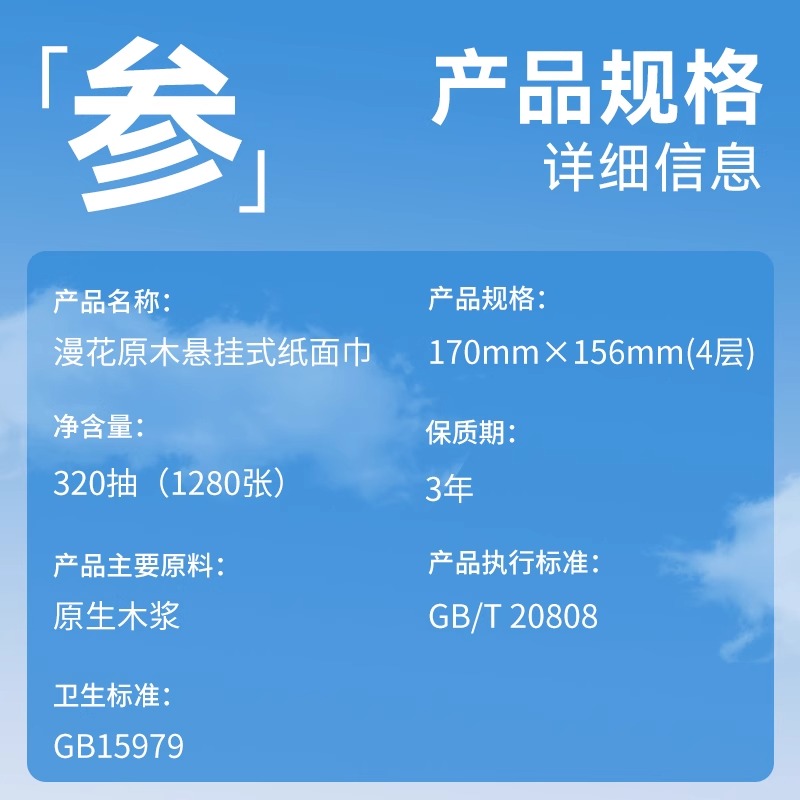 漫花6大提1280张悬挂式抽纸家用实惠囤货挂式纸巾学生宿舍卫生纸 - 初创优品家居专营店