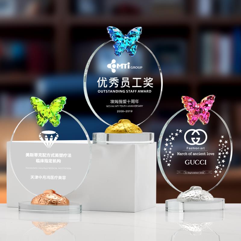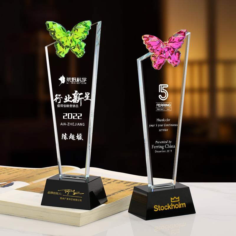 炫彩水晶蝴蝶奖杯定制优秀个人团队企业比赛销冠荣誉纪念杯定做