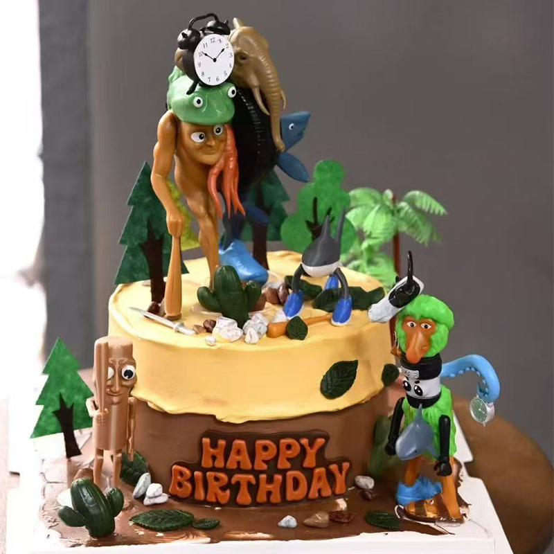 山海经木棍人蛋糕装饰摆件鲨鱼奶牛融合怪木头人异兽通通通家族 - 葫芦娃烘焙工坊