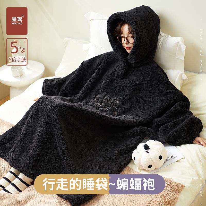 冬季睡衣女大尺码连身睡袍加厚珊瑚绒保暖超长大睡裙盖毯式连帽睡 - 光复百货官营店