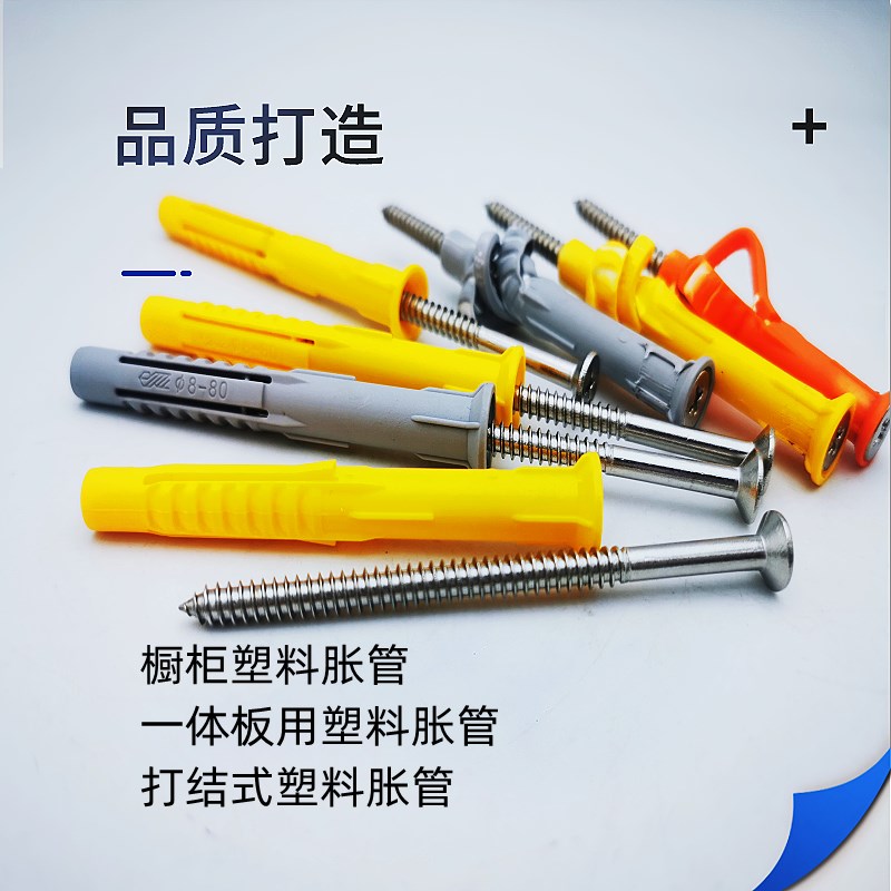 塑料胀管不锈钢螺钉加强型打结塑料膨胀管橱柜门窗一体板用锚栓M8 - 优汇通品商城