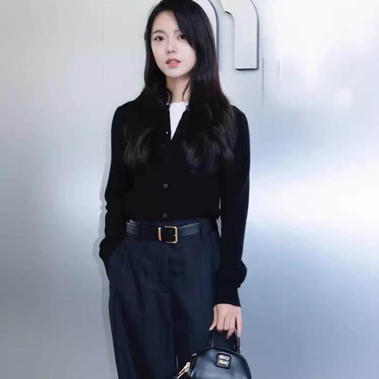 2025春秋新款100%纯羊毛开衫女圆领长袖针织外套宽松显瘦毛衣上衣 - Muran Yan燕木冉羊绒馆