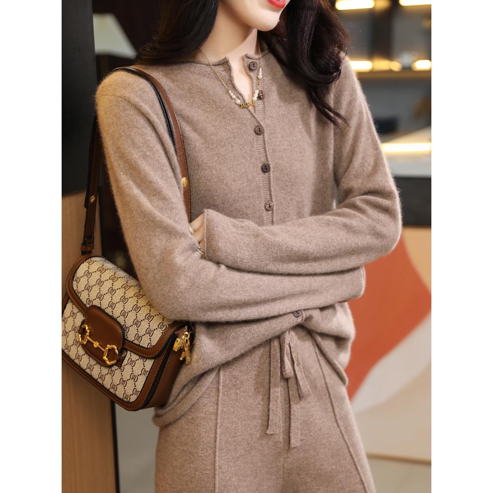 MONLOUVE100纯针织开衫女25秋冬宽松长袖无缝圆领毛衣薄外套保暖 - 硬糖服饰