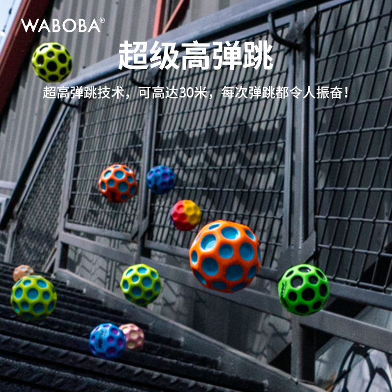 WABOBA手腕带绳户外玩具球可回收训练高弹力球儿童成人解压飞月球